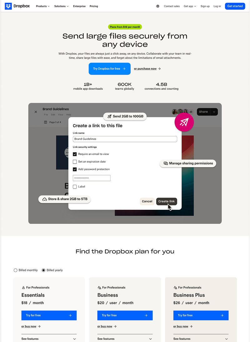 Dropbox SEM landing page
